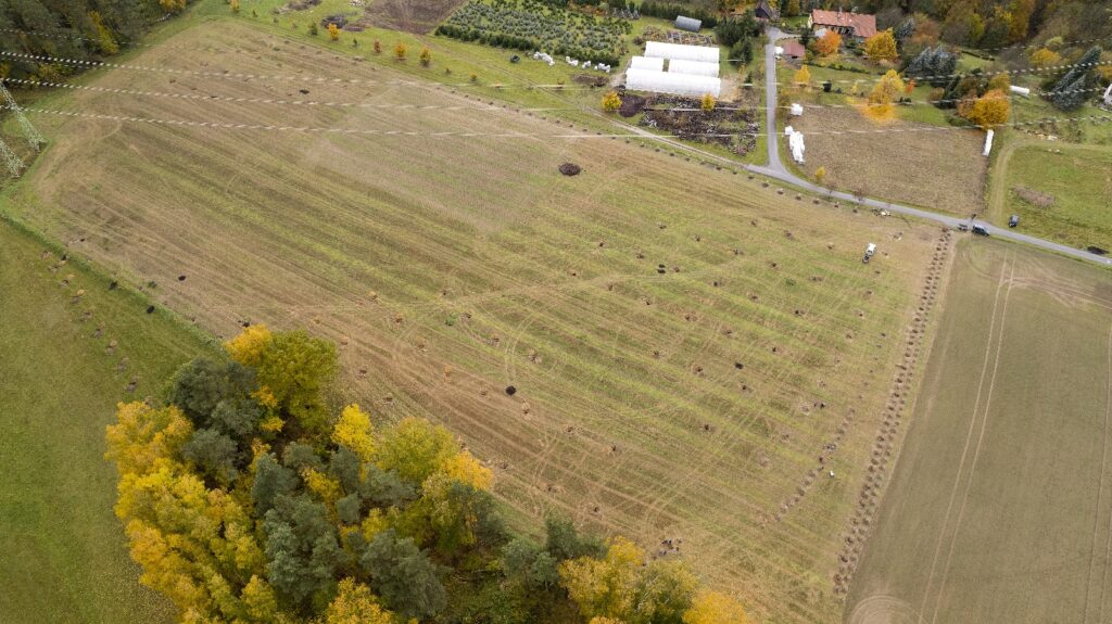 Nové pozemky v Českém ráji, na kterých letos spolek ZAzemí vysázel ovocný sad spolu s místními základními školami. (Na fotce již předchystané výsadbové jámy.)